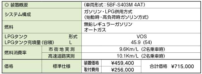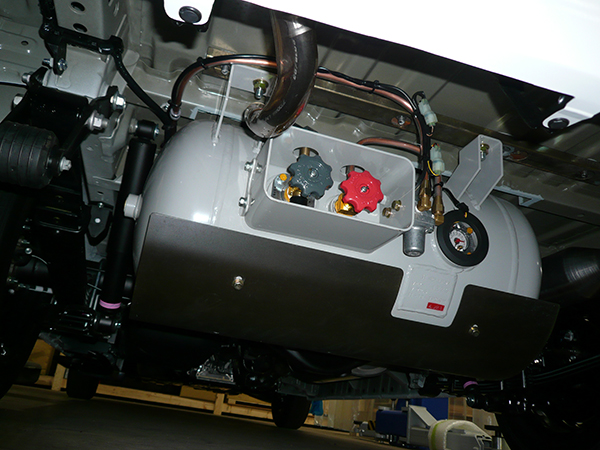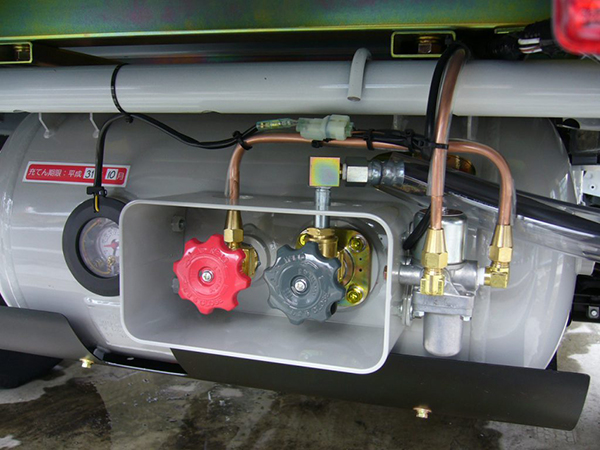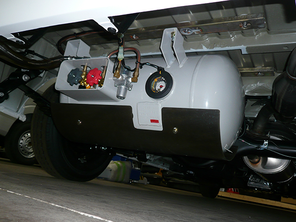 ほとんどの運転領域をLPGでカバー。タンクは、床下装着。荷室広さは、変わりません。