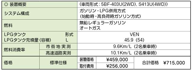 - 当社システムのベストセラー、抜群の耐久性を誇るエンジンとの組み合わせで、 バルブシートトラブルは皆無。オートガス利用で燃料代大幅削減。