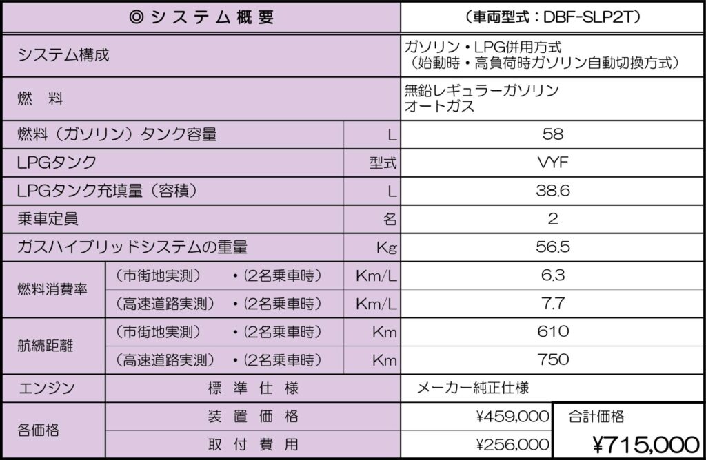 - プロボックスとインテグラルガスハイブリッドは相性抜群。