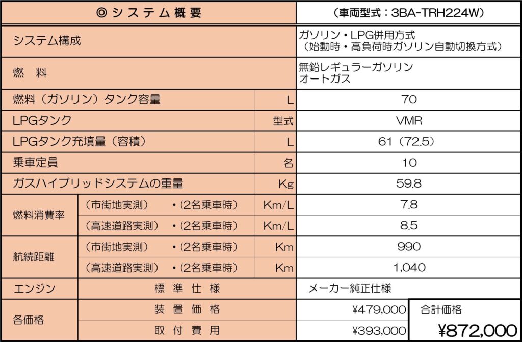 - トヨタ・ハイエースワゴン用 ガスハイブリッドシステム