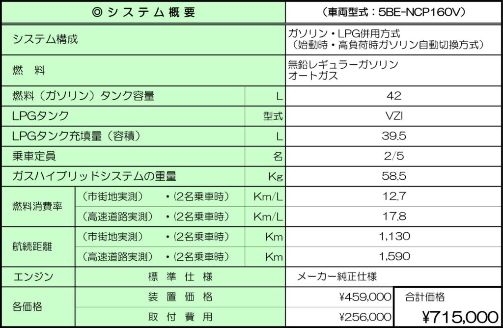 - トヨタ・プロボックス用 ガスハイブリッドシステム