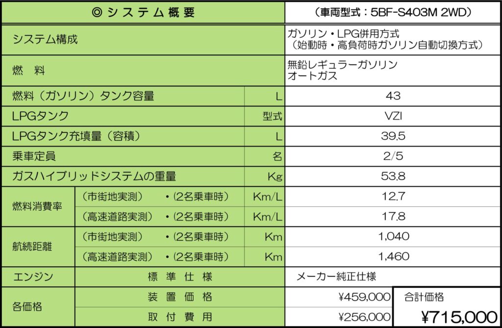 - 三菱・ミニキャブバン用 ガスハイブリッドシステム