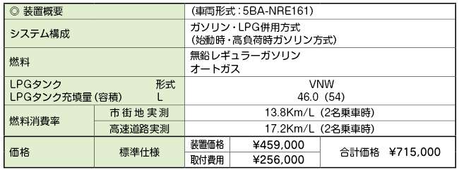 - トヨタ・カローラアクシオ用 ガスハイブリッドシステム