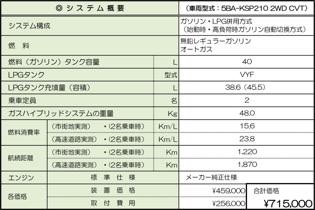 - トヨタ・ヤリス用 ガスハイブリッドシステム